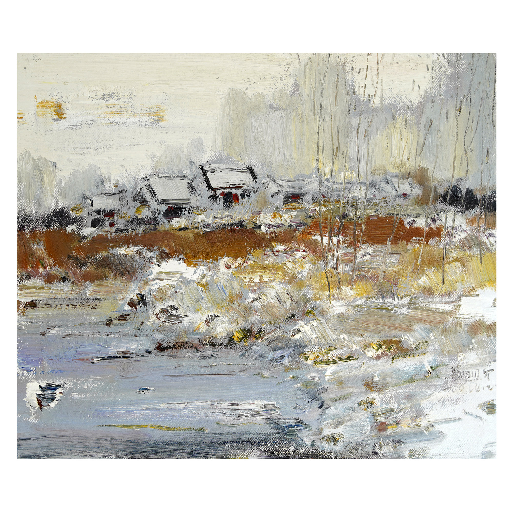 In this winter landscape, I don’t wish to explain or decode. I only hope that when you stand before these colors, you don’t just see a snowscene—you feel a fragment of your own life. May these brushstrokes stir the silent depths within you, touching that sacred place where words are no longer needed, and only emotion remains.